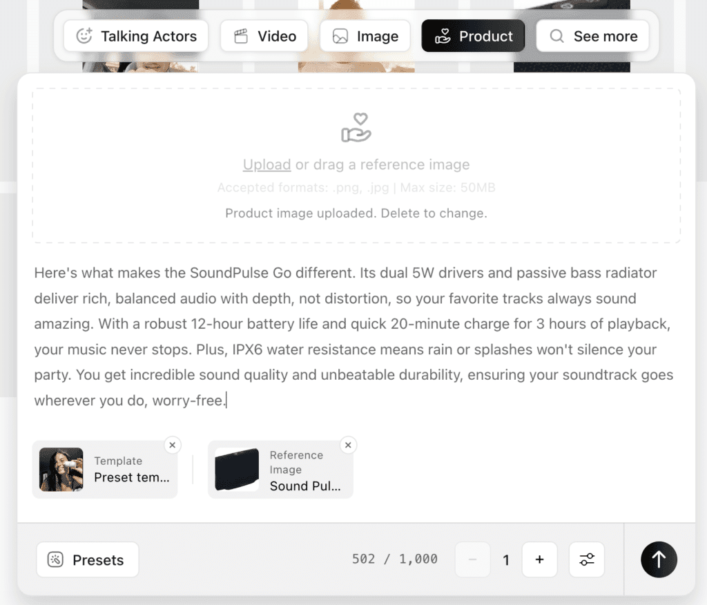 Here’s where this gets powerful – combine it with Arcads AI’s Product Showcase feature.